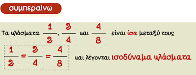 Μάθαμε σήμερα πότε δυο ή περισσότερα κλάσματα είναι ισοδύναμα.